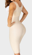 Además, brinda un excelente cubrimiento en la axila gracias a su espalda cubierta y su sistema de cierre completo con ganchos internos. Este cierre facilita la colocación de la prenda y permite ir al baño sin tener que quitársela.