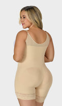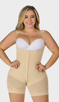 Faja corta moldeadora, ofrece soporte en la espalda y debajo de las axilas para un excelente control y resultados estéticos. Tiene hombreras removibles, cuenta con 2 niveles de ganchos, cierre en la parte inferior que facilita el uso del baño y realce natural en glúteos con un diseño exclusivo y discreto.