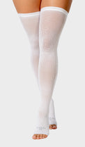 Dispositivo médico no invasivo diseñado para la profilaxis efectiva de la Trombosis Venosa Profunda (TVP) en pacientes quirúrgicos u hospitalizados. Estas medias ofrecen una compresión graduada (máxima en tobillo) que optimiza el flujo sanguíneo y minimiza el riesgo de distensión venosa. Fabricadas con tejido tipo malla, suave y altamente transpirable, garantizan un confort superior sin irritación. Su diseño bi-elástico facilita la postura, y la puntera libre permite la evaluación continua del paciente.